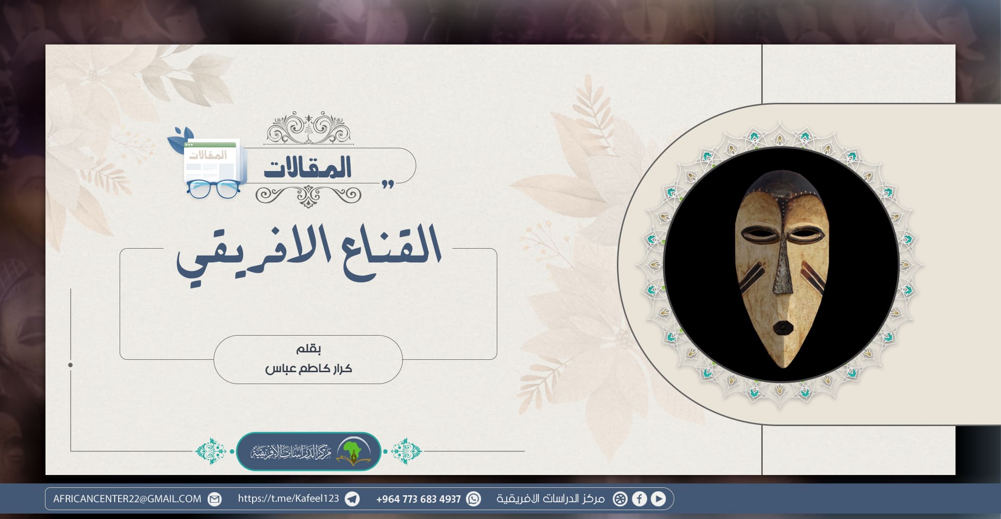 وقد أكد بعض الباحثون بأن القناع الأفريقي ليس وليد اليوم ، إنما هو موجود منذ قديم الزمان ، أي منذ قرابة القرن الخامس او السادس قبل الميلاد ،