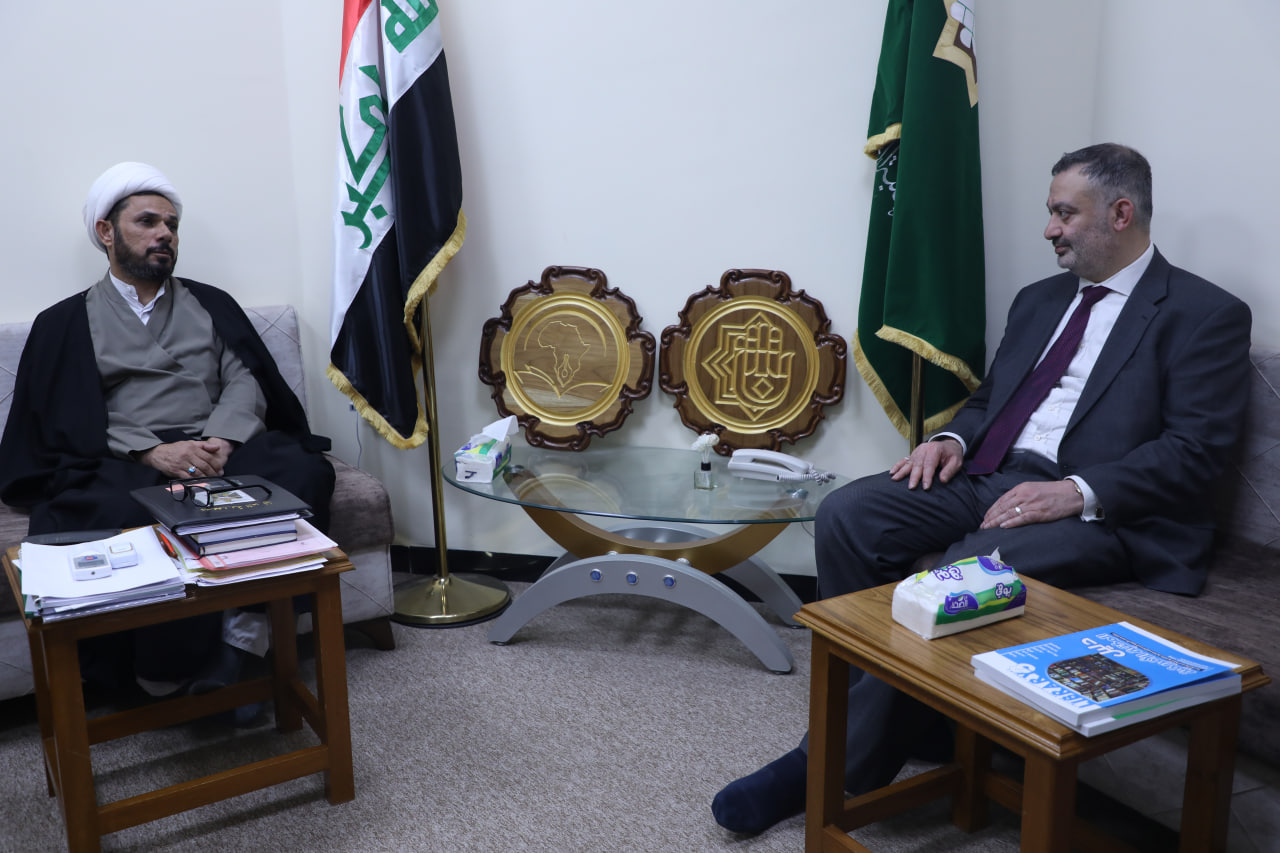 استقبل مدير مركز الدراسات الافريقية التابع لقسم الشؤون الفكرية والثقافية في العتبة العباسية المقدسة سماحة الشيخ سعد ستار الشمري عميد كلية سنترال بيدفوردشاير البريطانية الدكتور علي هداوي والوفد المرافق له وجرى خلال اللقاء الحديث عن عمل المركز في القارة السمراء ورعايته للجاليات الافريقية في العراق وبيان بشكل مجمل اهم المشاريع والبرامج الفكرية والثقافية والاجتماعية والانسانية اضافة الى البرامج الدينية والعقائدية والتوعوية.