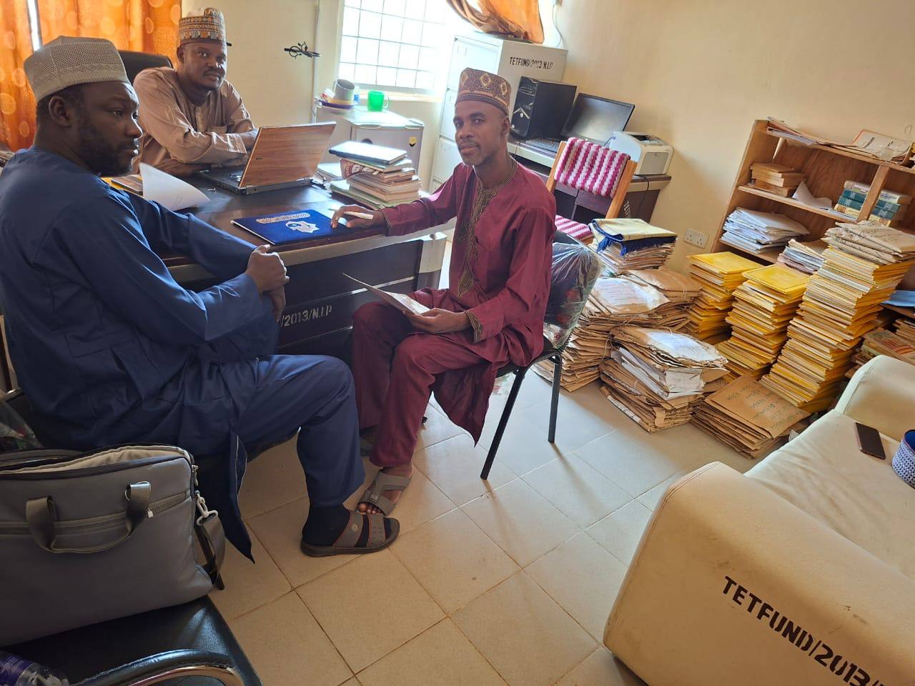 وخلال زيارته العلمية، التقى الدكتور المعظم برئيس قسم اللغة العربية في كلية التقنيات المتعددة بمدينة يولا، عاصمة ولاية آدماو، الدكتور أبوبكر أحمد، حيث تناول اللقاء سبل التعاون العلمي بين الجانبين، لاسيما في مجالات البحث والتأليف الأكاديمي.
