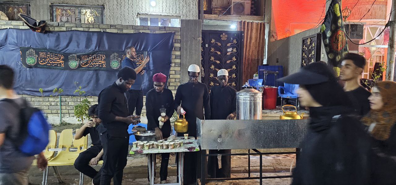 منتسبو مركز الدراسات الإفريقية يباشرون بتقديم الخدمة لزوار الإمام الحسين (عليه السلام) على طريق الجنة في النجف الأشرف