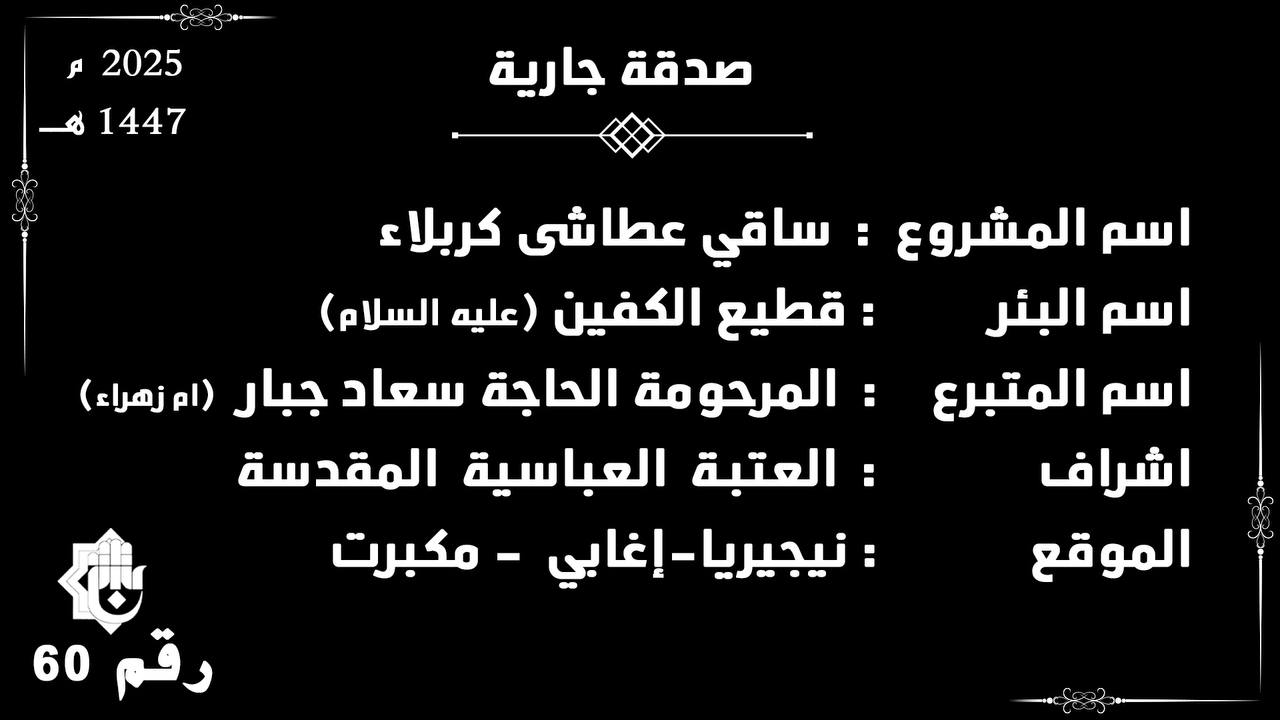 #العتبة_العباسية_المقدسة #مركز_الدراسات_الإفريقية #نيجيريا #صدقة_جارية #ساقي_عطاشى_كربلاء #قطيع_الكفين #مشاريع_إنسانية #ماء_الحياة #أفريقيا